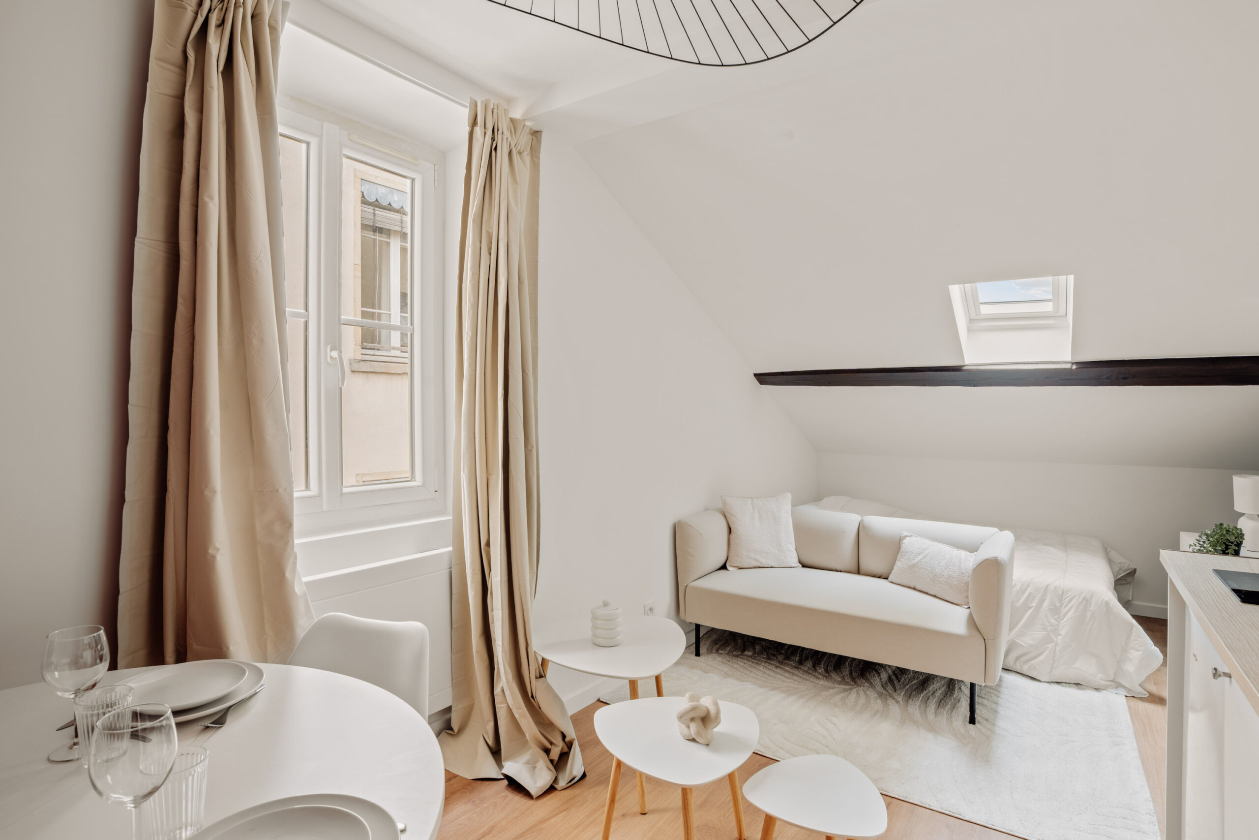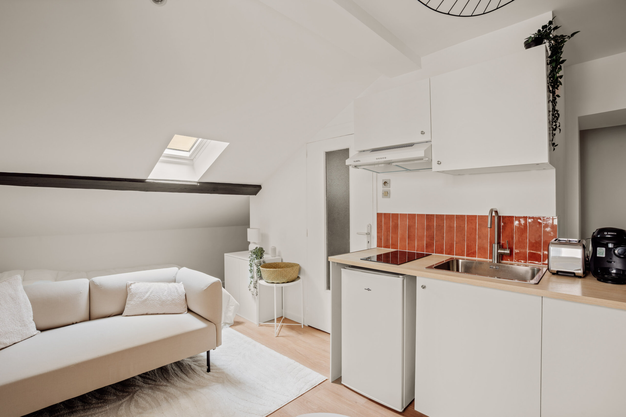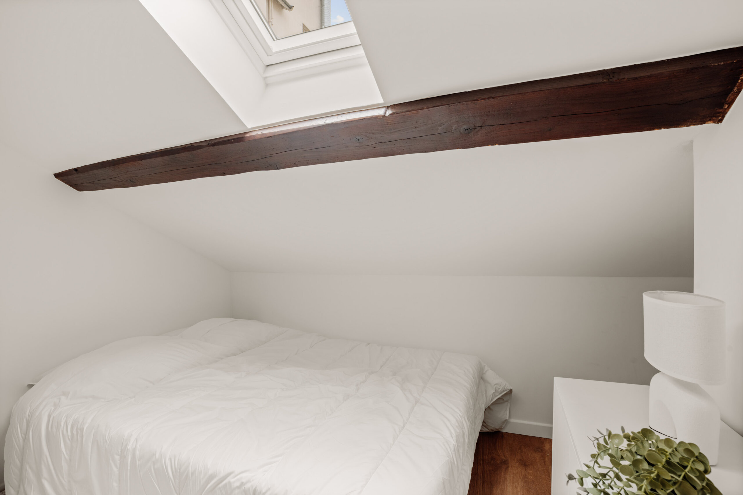 Le projet a bénéficié d’une rénovation complète, pensée pour maximiser le confort, la fonctionnalité et la performance énergétique de l’appartement. Un placard a été créé en récupérant de l’espace sur les parties communes, permettant d’ajouter une pièce supplémentaire et de porter la surface habitable de 17 à 19 m². Les murs et le plafond ont été isolés, le radiateur remplacé et le velux renouvelé, assurant ainsi un confort thermique optimal, une meilleure luminosité et une performance énergétique améliorée (DPE optimisé). Ces travaux ont non seulement renforcé le confort pour le futur locataire, mais ont également valorisé le bien et son potentiel locatif, combinant esthétique, praticité et rentabilité.