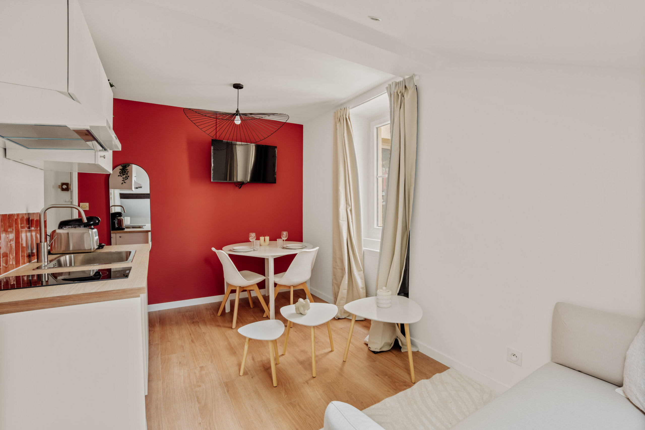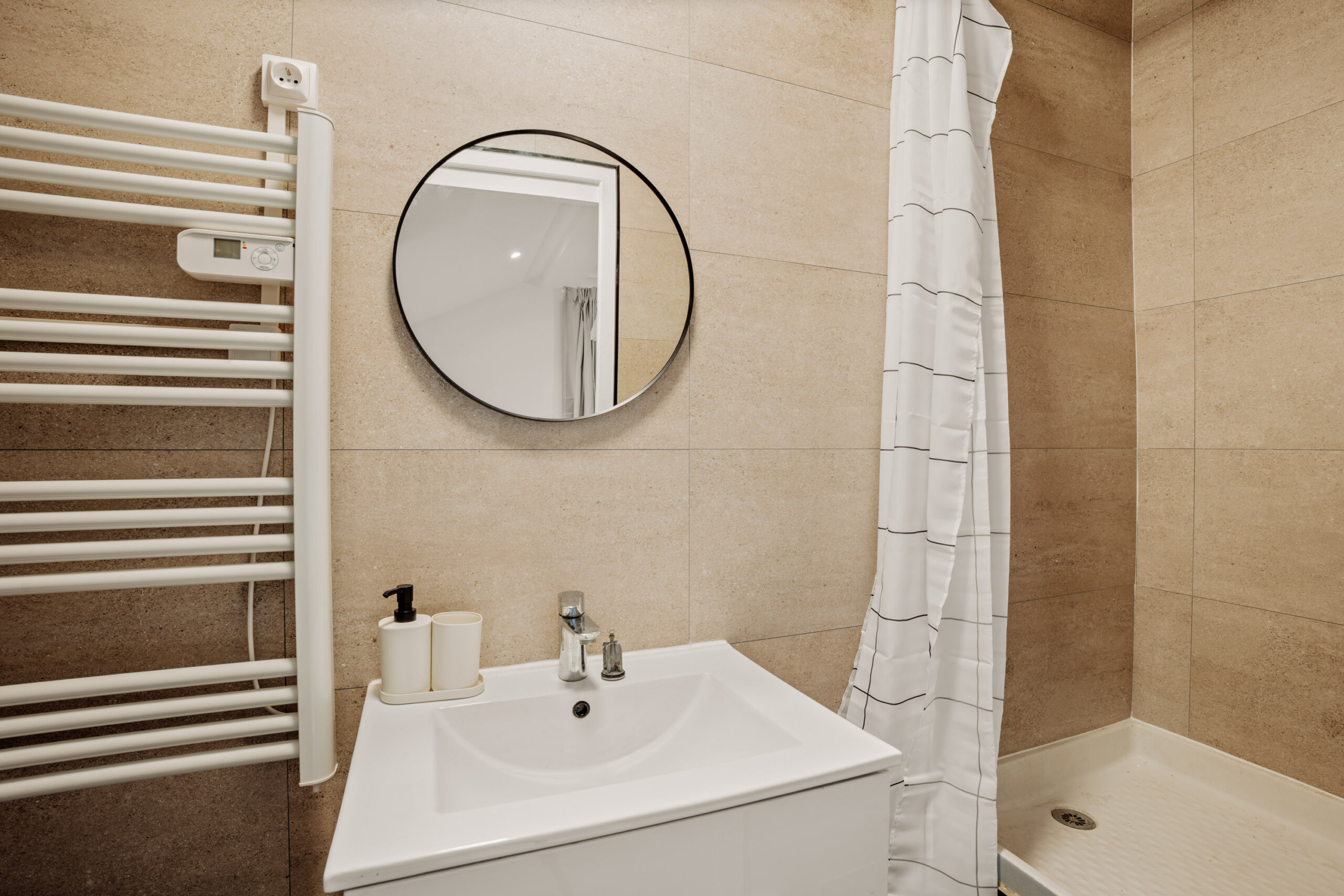 Parallèlement, des travaux de rénovation ont été réalisés : isolation des murs et du plafond et remplacement du radiateur, améliorant le confort thermique et acoustique de l’appartement.